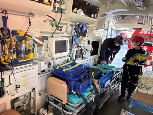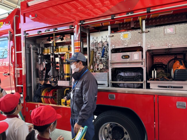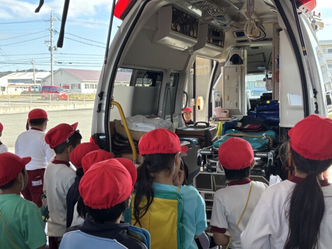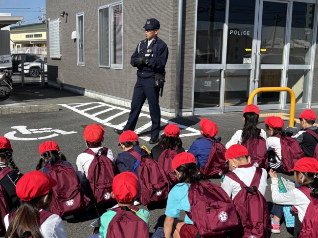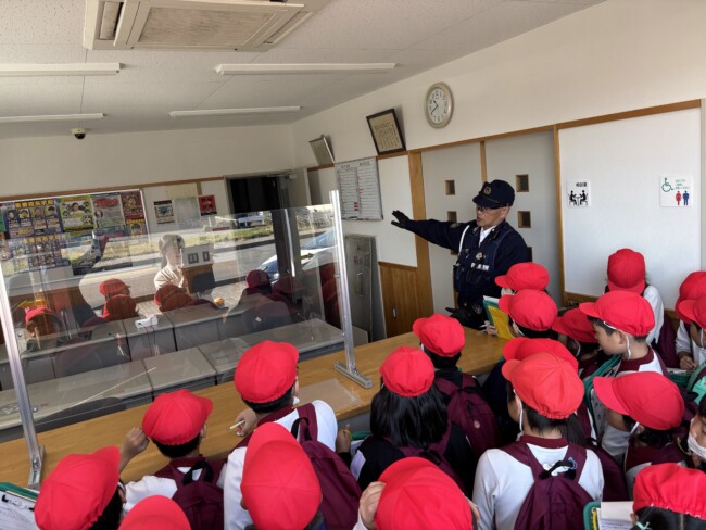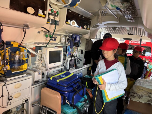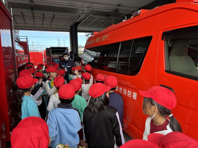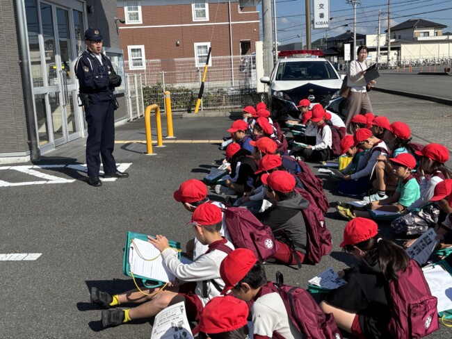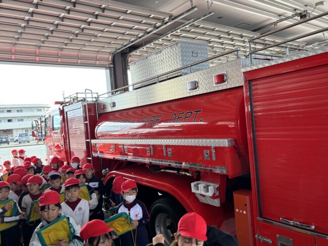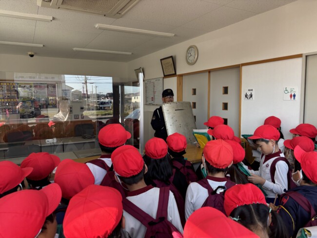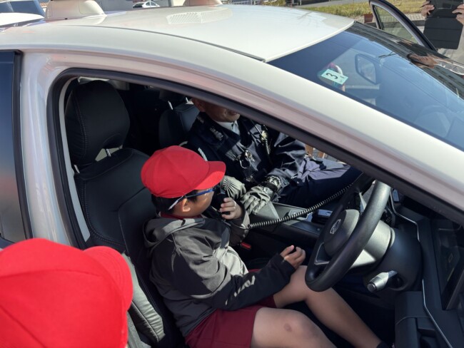 11月14日(金)、3年生は消防署と交番に見学に行きました。消防署の中を見学させていただくとともに、消防車の働きについて教えていただきました。出動命令が出てすぐに出動できるように、隊員の一人一人が工夫されていることも教えていただきました。その後、お隣の交番に移動し、おまわりさんの持ち物や仕事について教えていただきました。パトカーにも乗せていただきうれしそうな3年生でした。消防署の皆さん、交番のおまわりさん、私たちのためにいつもありがとうございます。