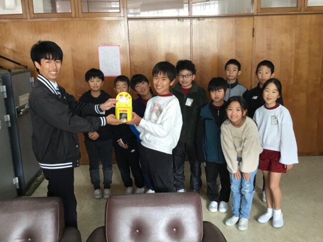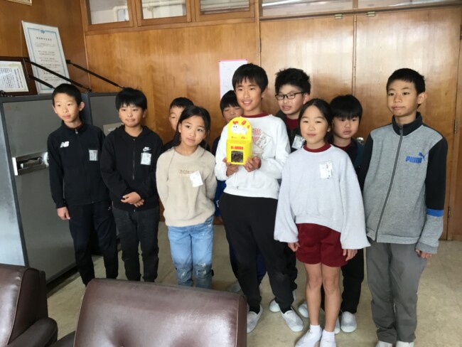 福祉に役立ててください 2025/12/23 4年生が「たつのこ」で取り組んできた「福祉」への取り組み。学習発表会でバザーを開催したり、校内で募金活動を行ったり…。今日は、そうして集まったお金を市の福祉協議会の方にお渡ししました。集まったお金は1万円以上です。「福祉のために使います。」という言葉をいただき、うれしそうな笑顔を見せた4年生でした。