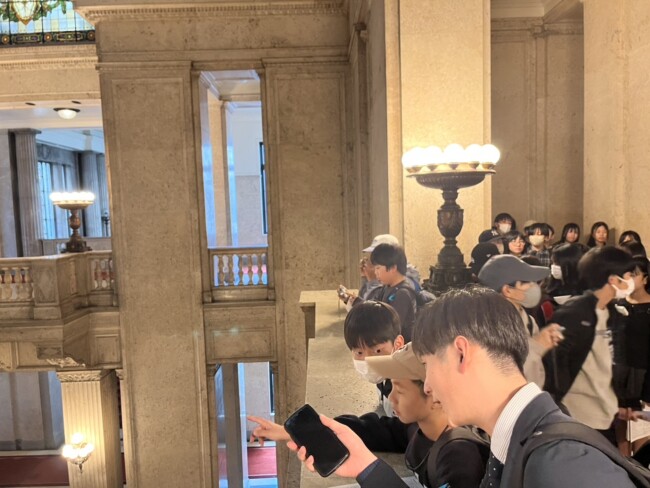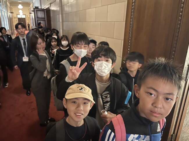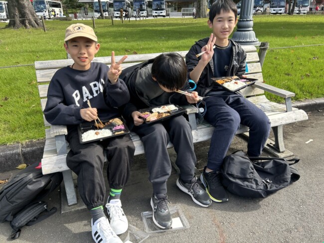6年生は予定どおり、晴天の下皇居外苑でお昼ご飯を食べ、その後国会議事堂を見学しました。この後浅草へ移動となります。