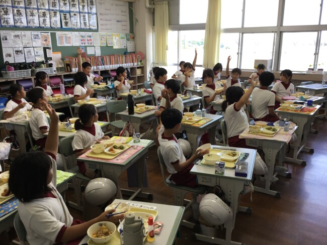 まおまおさんが撮影に来ました 2025/06/18 まおまおさんの企画として、「学校の給食風景を御家庭に」ということで、今日は5年1組の給食の様子を撮影に来てくれました。配膳から片付けまでの流れを撮影してくれました。カメラがあることでいつも以上に高いテンションで給食を食べていました。今日撮影してもらった映像は、いつ流してもらえるのでしょうか。わかり次第、メールでお知らせします。