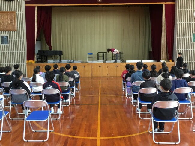 今日の4時間目、6年生が初めて「卒業式」の練習を行いました。本校の卒業式は在校生が参加しないため、「卒業式」の厳かな雰囲気をイメージしにくいところがあると思います。(5年生の時に総練習のみ参加します)歩き方、立ち方、座り方、礼の仕方…、キリッとした動きが求められます。先生の動きを参考にして、一つ一つ身に着けて、本番では温かくも厳かな雰囲気を作り出せるようにしていきたいですね。