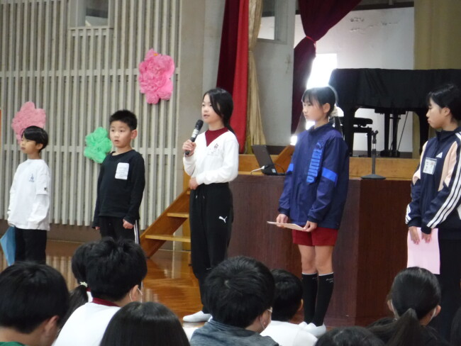 新任式では新しくみえられた先生方から個性あふれる自己紹介がありました。また、子供たちは東小の宝や御前崎市のいいところを詳しく紹介してくれました。