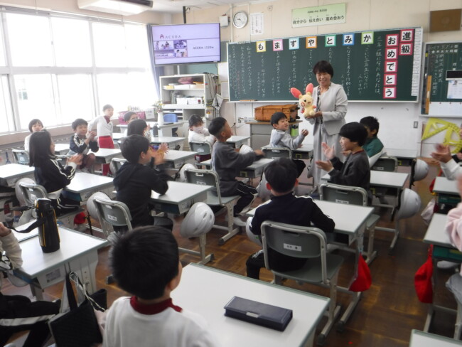 入学式では、かわいい1年生が元気いっぱいに張りきった姿を見せてくれました。園で育ってきた子供たちの力を十分に発揮させ、新しい小学校という環境の中で大きく成長してほしいと願っています。