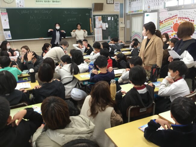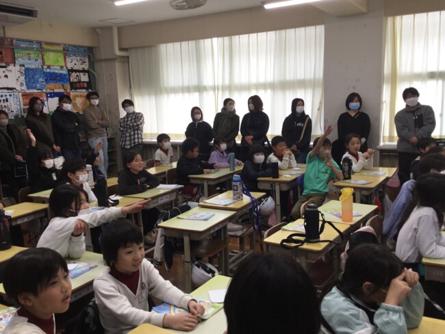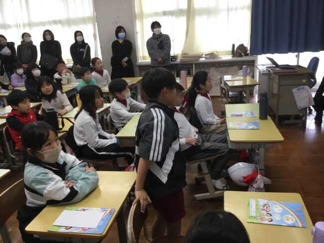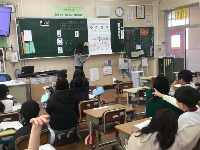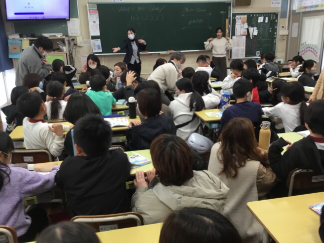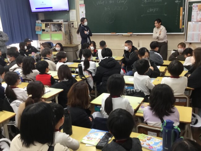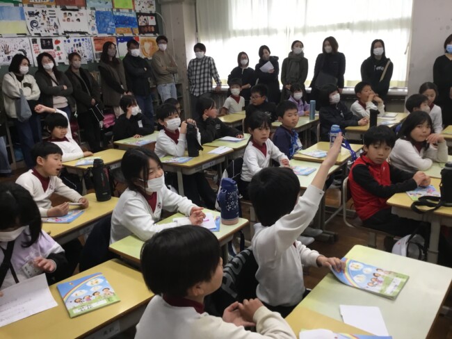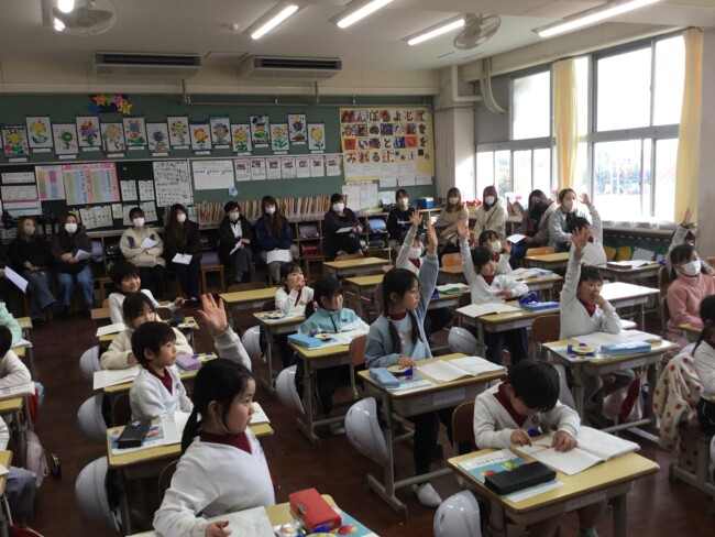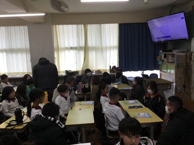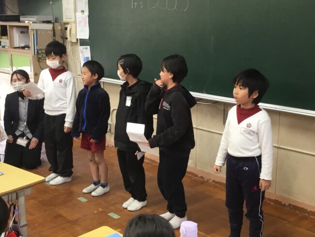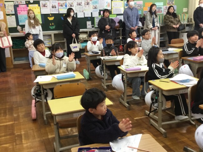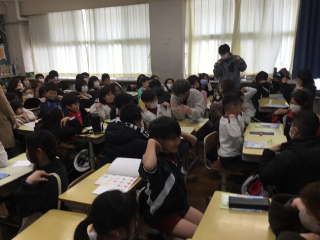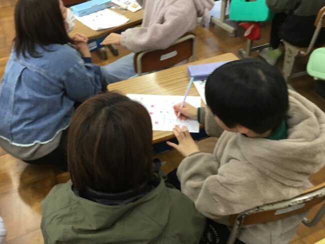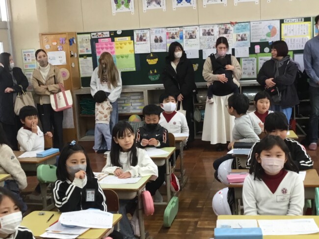 今日は1年生から3年生の参観・懇談会が開催されました。1年生は算数で引き算の学習に取り組んでいました。みんなで答えを導こうと班に分かれて考えました。お父さん、お母さんの前で張り切って取り組んでいました。2年生は音楽。音符と休符を自分で考えて並び替え、リズムを作っていました。おうちの人も一緒に考えてくれていましたね。3年生は外国語。英語で出されたヒントをもとにクイズの答えを言い当てる活動の後、おうちの方も参加してALTの言葉に合わせて競争する活動に取り組みました。親子の白熱した姿が繰り広げられました。