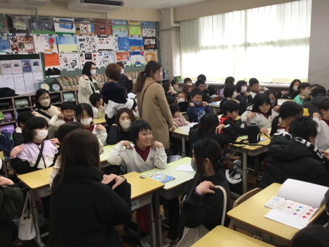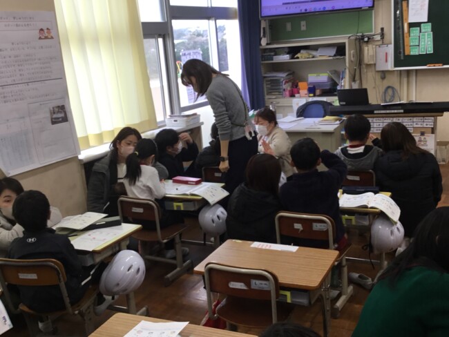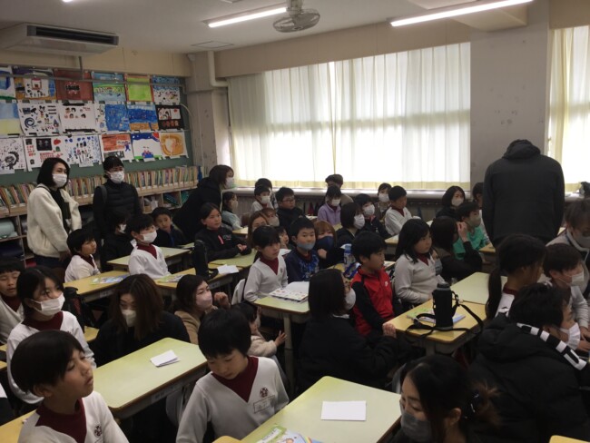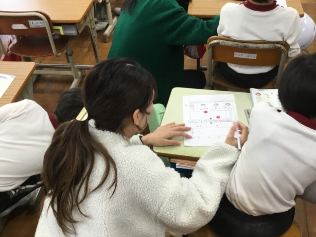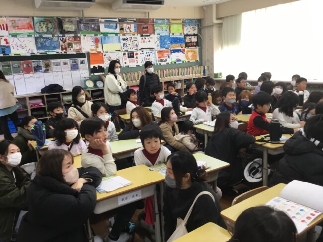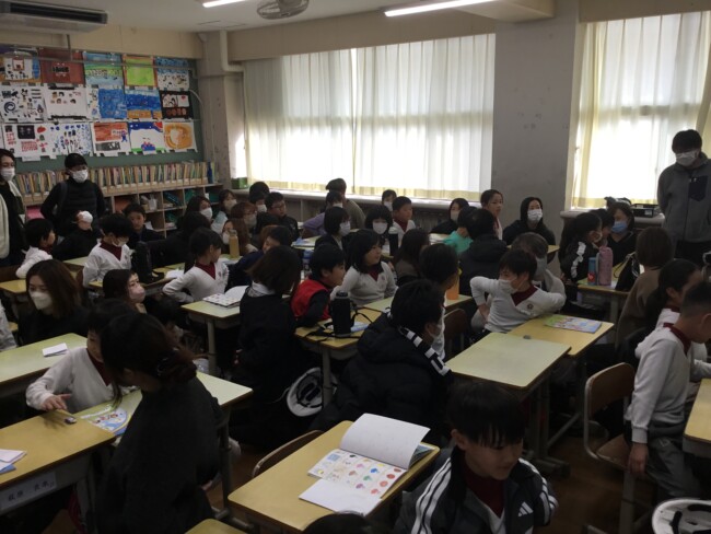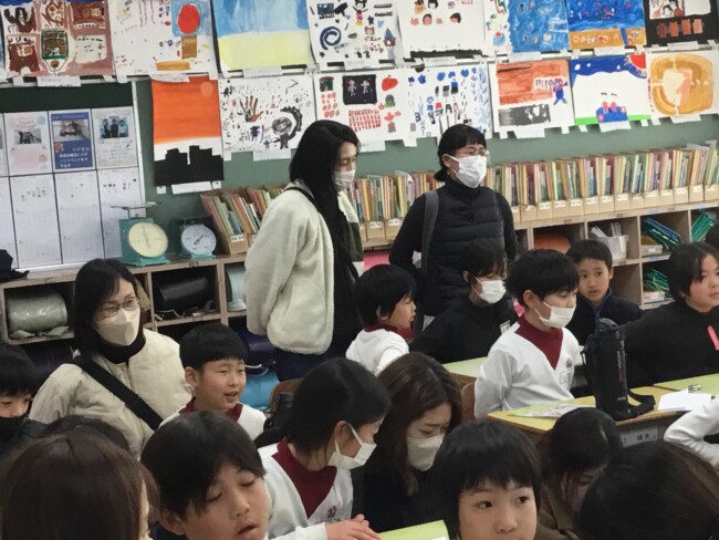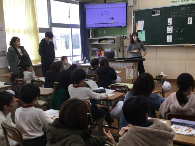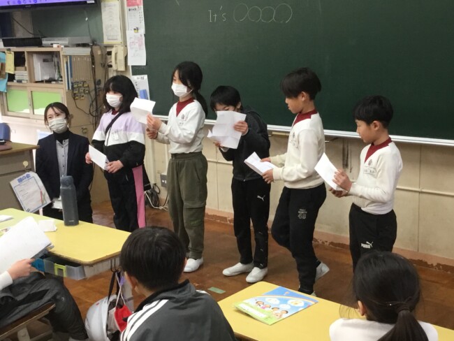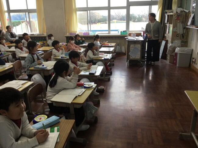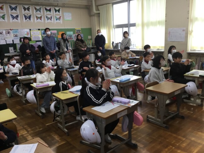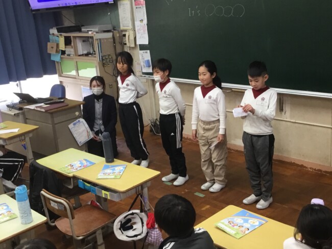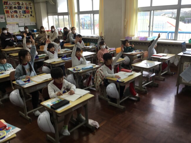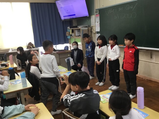 今日は1年生から3年生の参観・懇談会が開催されました。1年生は算数で引き算の学習に取り組んでいました。みんなで答えを導こうと班に分かれて考えました。お父さん、お母さんの前で張り切って取り組んでいました。2年生は音楽。音符と休符を自分で考えて並び替え、リズムを作っていました。おうちの人も一緒に考えてくれていましたね。3年生は外国語。英語で出されたヒントをもとにクイズの答えを言い当てる活動の後、おうちの方も参加してALTの言葉に合わせて競争する活動に取り組みました。親子の白熱した姿が繰り広げられました。