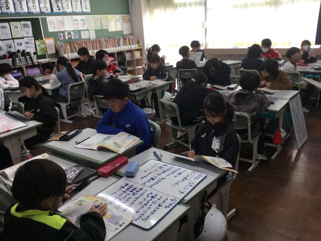 本日は第3回学校スクラムスクール運営協議会が開催されました。委員の皆様には5時間目の授業を参観していただきました。「年度当初より落ち着きがあり、集中して取り組めていて力がついてきていると感じる。」、「先生と子どもたちで輪になって話し合っている様子や班の友達と教え合っている様子がこれまでの授業の形とは変わってきていると感じた。」、「宝カードでいろいろな友達からメッセージがもらえるのはうれしいことだと思う。」など、子どもたちの姿や掲示物などからの感想をいただきました。どのクラスも、落ち着いて、そして真剣に授業に取り組めていましたね。