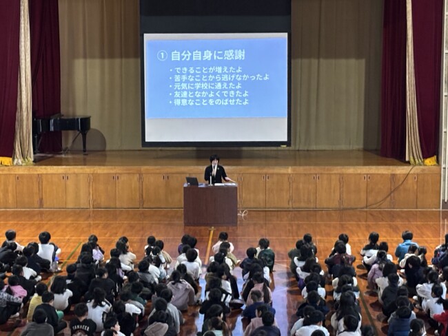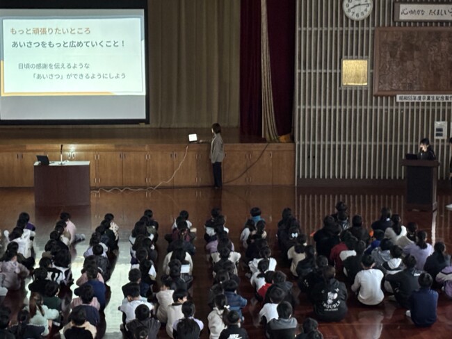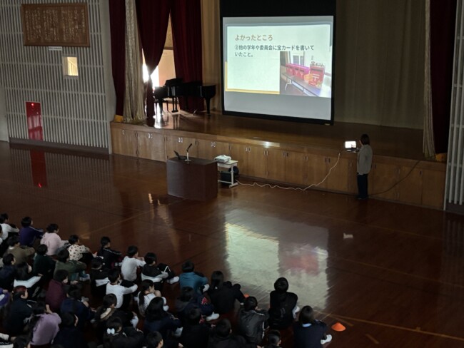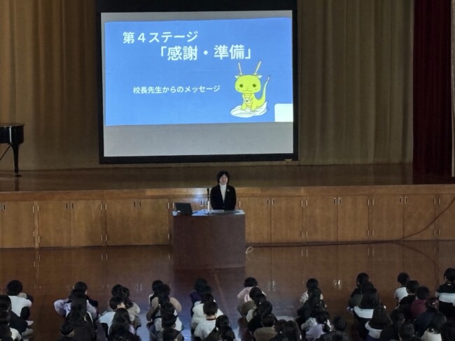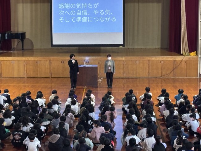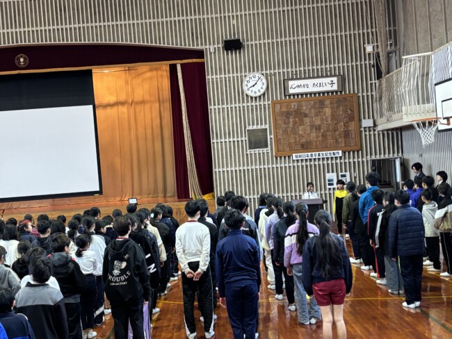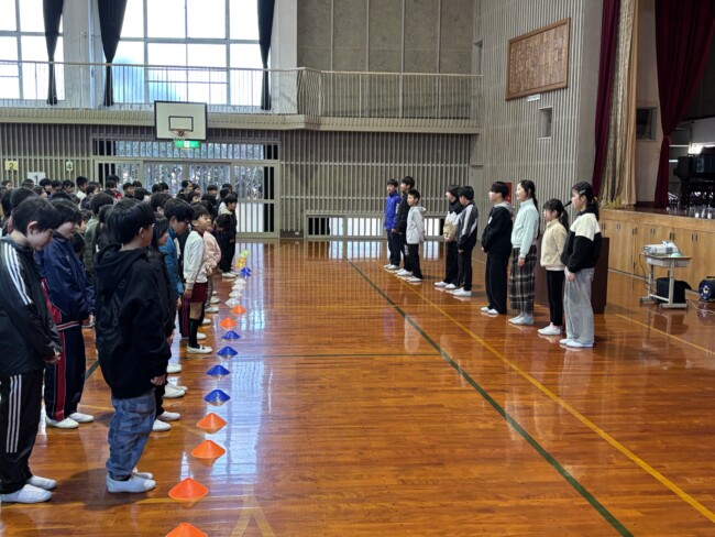 楽しかった冬休みが明け、今日から東っ子のみんなが登校してきました。「おはようございます。」「明けましておめでとうございます。」とにこにこ笑顔で挨拶をしてくれる子がたくさんいて、とっても嬉しくなりました。今日から「感謝・準備」のステージが始まります。寒い中、体育館に集まり、なかよし委員会の進行で会は進められました。各委員長から前のステージの振り返りや今ステージの取組について話が合った後、校長先生から「感謝」についてお話がありました。話を聞く姿勢や態度が大変立派で、子どもたちの成長を感じるとともに、ここからのステージも頑張るぞ!という意気込みが伝わってきました。会の最後に、育休職員の代わりに努めていただく下村先生の紹介がありました。下村先生、よろしくお願いします。
