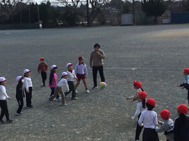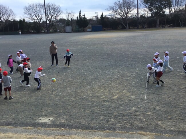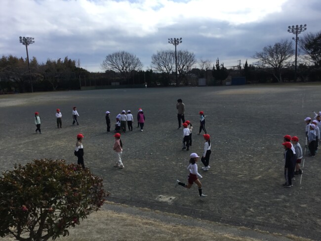 お昼前、ワーワー、キャーキャーとグラウンドからかわいらしくも元気のいい声が聞こえてきました。1年生の体育の時間。最後にドッジボールをやることになったようで、どっちのチームも「負けたくない」という思いをもって、全力で取り組んでいました。結果は・・・。朝も登校後に外で元気よく遊んでいるのは1年生。寒さに負けず、これからもいっぱい体を動かしていきましょう。
