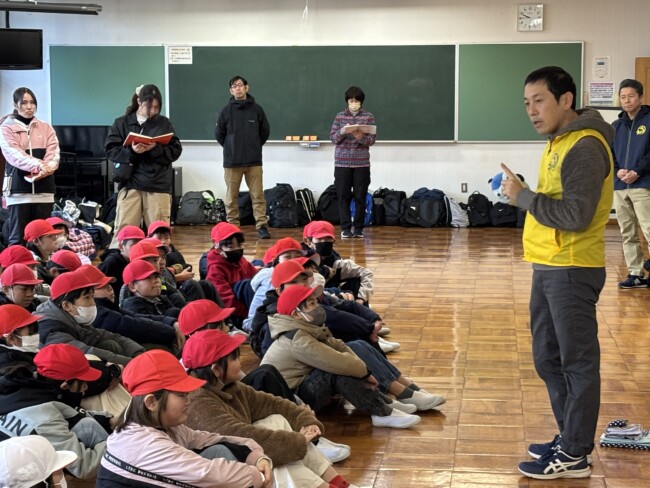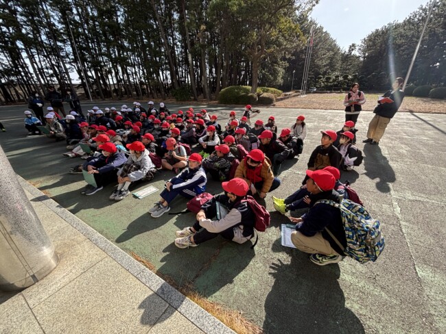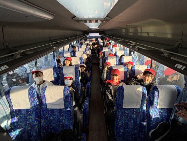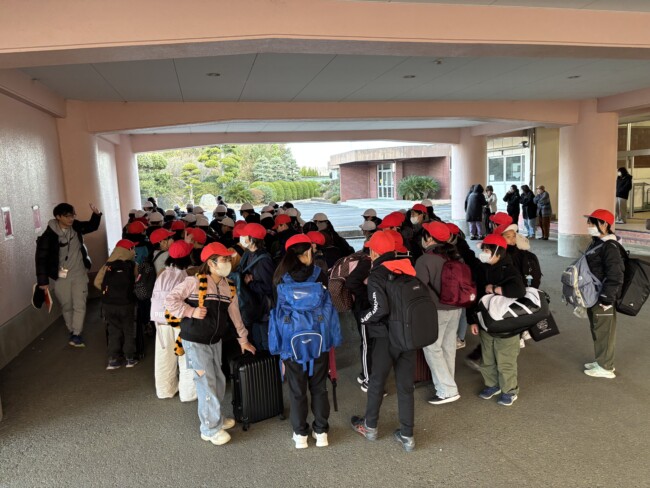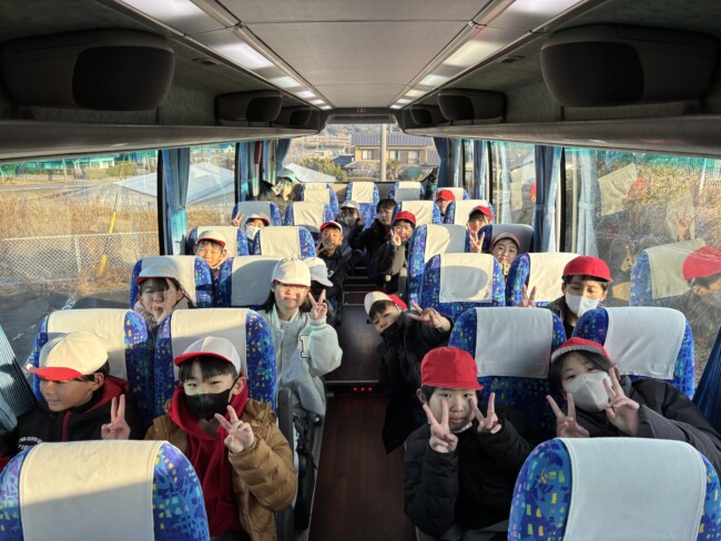 自然教室に出発しました 2026/01/15 11月に予定されていた自然教室ですが、熊が出たことで場所も「焼津青少年の家」に変更となり、期日も今日、1月15日と明日16日になってしまいました。それでも、子どもたちは計画を立て直し、今日を迎えました。出発前の子どもたちは、やっぱり笑顔。期日や場所が変わっても仲間と過ごす体験が待ち遠しかったんんですね。2日間とも天気が良さそうで、良い活動ができそうです。青少年の家について入所式をしたあと、「宝探し」に出発しました。