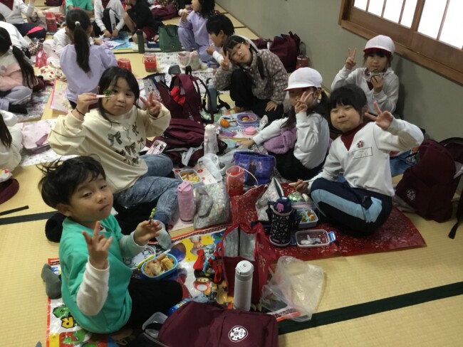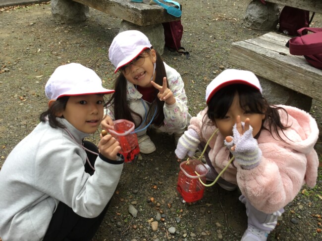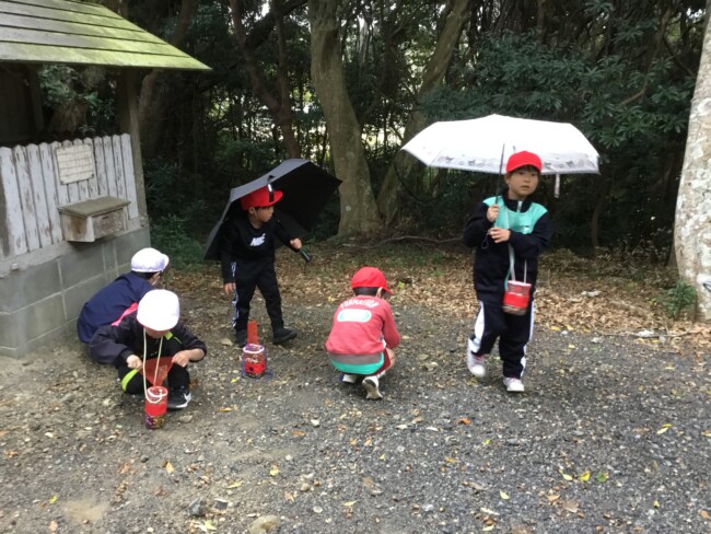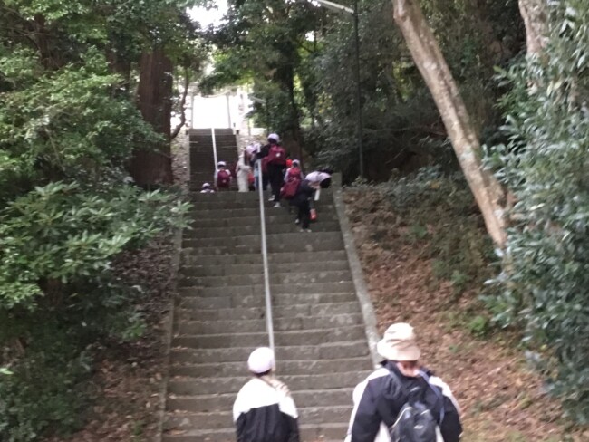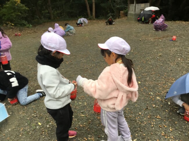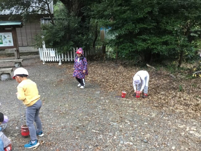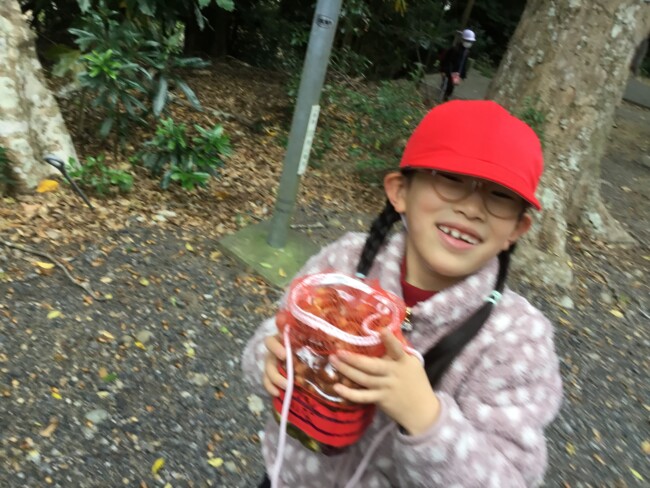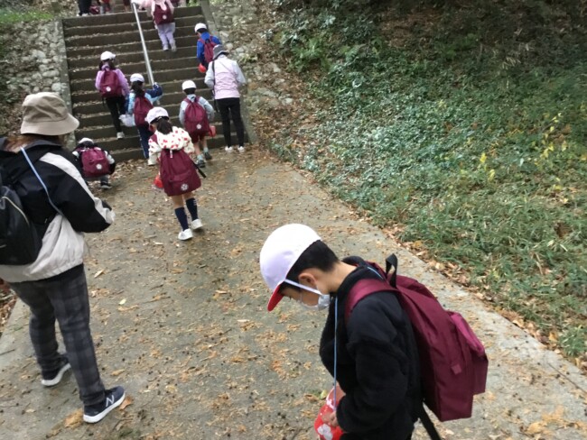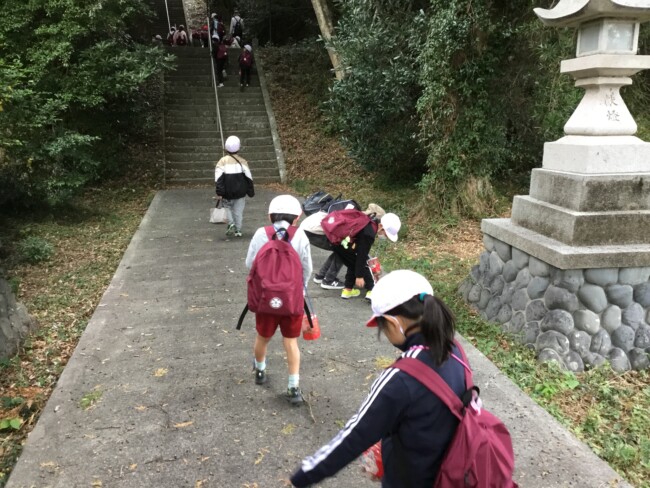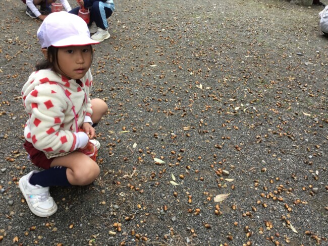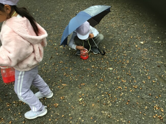 来週からは12月。秋もいよいよ深まってきました。そんな中、1年生は比企地区の賀茂神社まで「秋さがし」に行ってきました。昨日までの小春日和はどこへいってしまったのか、時々小雨が降るあいにくの天気となりましたが、それでもドングリを拾うことはできました。1年生みんなで拾っても取り切れないくらいにたくさん落ちていたドングリ…。秋がいっぱいでした。